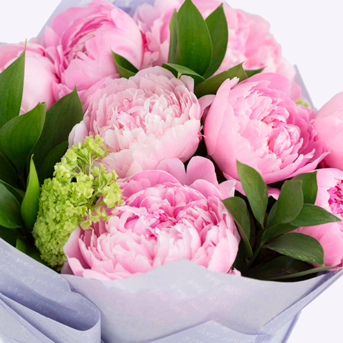 Розы - 5 шт., Диантус-1 шт., Альстрамерия- 3 шт., Пионы-1 шт., Дендробиум-2 шт., Орхидея-2 шт., Бруния-2 шт., Эустома-2 шт., Зелень.